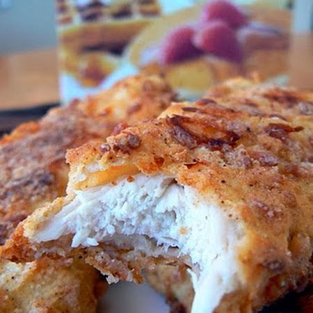 - Stir Bisquick mix, cheese, paprika and salt in shallow baking dish. Dip chicken strips into eggs, then coat with Bisquick mixture; repeat with other pieces, dipping in eggs and Bisquick mixture two times each. Place chicken on cookie sheet. Spray chicken with cooking spray.